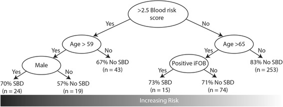 Conclusions: It is critical that individuals with high risk of having SBD are triaged to the appropriate category with the shortest wait time. Here we provide evidence that a combination of blood markers, demographic markers and the FIT test have a higher diagnostic accuracy for SBD than FIT alone.