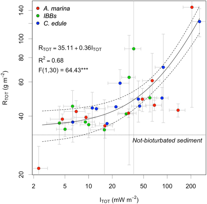 We propose an empirical framework to scale the effects of bioturbation on sediment resuspension to population bioturbation activity, approximated as population metabolic rate. Individual metabolic rates have been estimated as functions of body size and extrapolated to population level. We used experimental flumes to test this approach across different types of marine, soft-sediment bioturbators. We observed that a large part of the variance in biota-mediated sediment resuspension can be explained by a positive relationship with population metabolic rate. Other mechanisms can strongly influence the outcome, such as bioturbation of deep sediment strata, biotic interactions with hydrodynamic stress and overlapping areas of influence must be further investigated. By relating the biota-mediated changes in resuspended sediment to metabolism, we can place our observations within the broader context of the metabolic theory of ecology and to formulate general expectations about changes in biota-mediated sediment resuspension in response to changes in population structure and climate change.