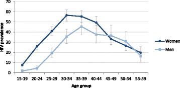 Results: We included 5649/6688 (84.5%) individuals. Median age was 26 years (IQR: 19-40), 62.3% were women. HIV prevalence was 25.2% (95% CI: 23.6-26.9): 30.9% (95% CI: 29.0-32.9) in women; 15.9% (95% CI: 14.0-18.0) in men. Overall progress towards the 90-90-90 targets was as follows: 76.4% (95% CI: 74.1-78.6) knew their status, 69.9% (95% CI: 67.0-72.7) of those who knew their status were on ART and 93.1% (95% CI: 91.0-94.8) of those on ART were virally suppressed. By sex, progress towards the 90-90-90 targets was: 79%-71%-93% among women; and 68%-68%-92% among men (p-values of women and men comparisons were < 0.001, 0.443 and 0.584 respectively). By age, progress was: 83%-75%-95% among individuals aged 30-59 years and 64%-58%-89% among those aged 15-29 years (p-values of age groups comparisons were < 0.001, < 0.001 and 0.011 respectively).