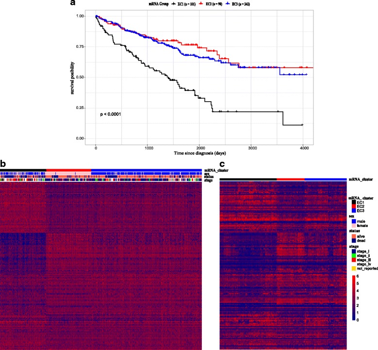 Methods: We adopted the genome, transcriptome and methylation HMK450 data of ccRCC in The Cancer Genome Atlas Network in this research. Consensus Clustering algorithm was used to cluster the expression data and three subtypes were found. To further validate our results, we analyzed an independent data set and arrived at a consistent conclusion. Next, we characterized the subtype by unifying genomic and clinical dimensions of ccRCC molecular stratification. We also implemented GSEA between the malignant subtype and the other subtypes to explore latent pathway varieties and WGCNA to discover intratumoral gene interaction network. Moreover, the epigenetic state changes between subgroups on methylation data are discovered and Kaplan-Meier survival analysis was performed to delve the relation between specific genes and prognosis.
