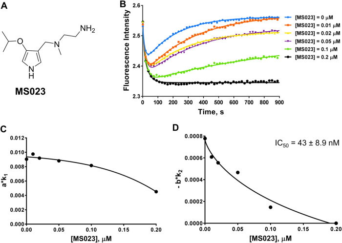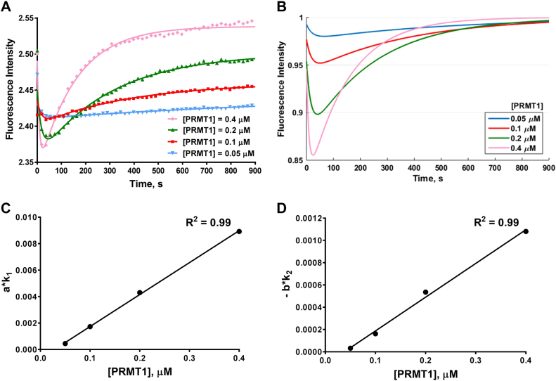 Detection of PRMT1 inhibitors with stopped flow fluorescence