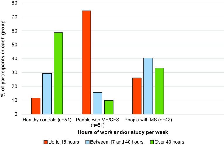 Objective: The aim of this study was to compare the functional status and well-being of people with well-characterised ME/CFS with people with multiple sclerosis (PWMS), as well as healthy controls (HCs).