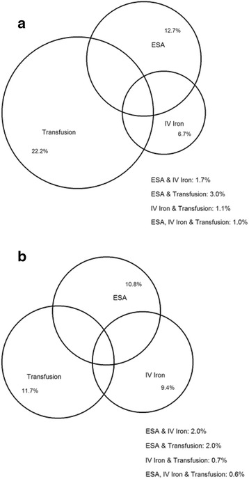 Methods: We evaluated anemia prevalence and treatment using two datasets: the Medicare 20% random sample (ages 66-85 years), and the Truven Health MarketScan database (ages 18-63 years). We selected stage 3-5 NDD-CKD patients with and without anemia from both databases during 2011-2013. We evaluated anemia prevalence and treatment (erythropoietin stimulating agents [ESAs], intravenous [IV] iron, red blood cell [RBC] transfusions) following anemia diagnosis during a 1-year baseline period, and healthcare utilization during a 1-year follow-up period. We used Poisson regression models to compare healthcare utilization in patients with and without anemia, adjusting for demographics, baseline comorbid conditions, inflammatory conditions, and CKD stage.