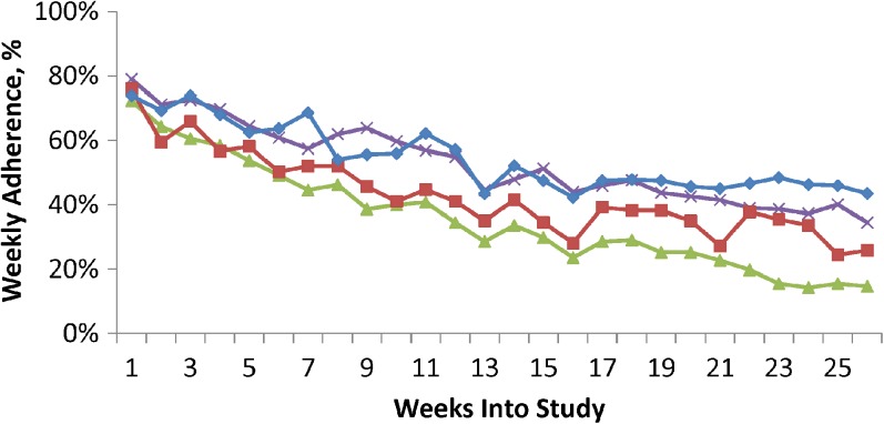 Interventions: Participants were randomly assigned to control, social support (partner), automated adherence alert messages (alert), or both social support and alerts (partner + alert). Participants in the social support arms were asked to name a medication adherence partner (MAP) to help them take their medication. Participants in the alert arms were sent emails, text messages, or automated phone calls if they had failed to adhere on the previous day and on one or both of the 2 days before that. In partner + alert, both participants and fully enrolled MAPs received alerts.
