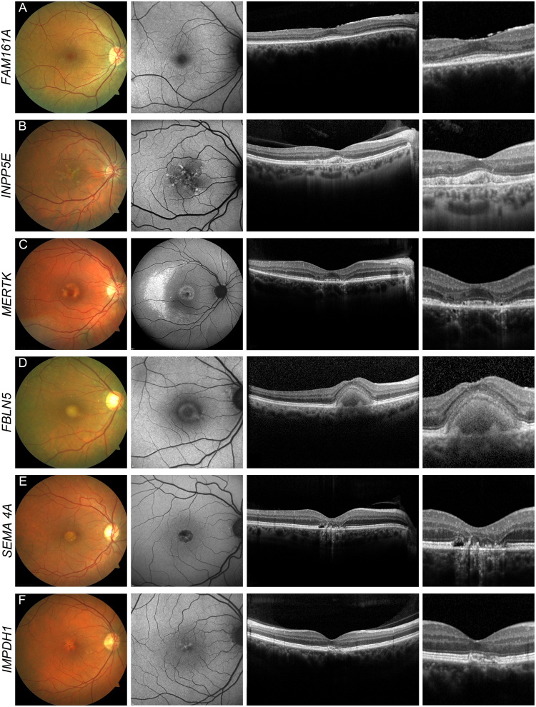 Macular and cone/cone-rod dystrophies (MD/CCRD) demonstrate a broad genetic and phenotypic heterogeneity, with retinal alterations solely or predominantly involving the central retina. Targeted next-generation sequencing (NGS) is an efficient diagnostic tool for identifying mutations in patient with retinitis pigmentosa, which shows similar genetic heterogeneity. To detect the genetic causes of disease in patients with MD/CCRD, we implemented a two-tier procedure consisting of Sanger sequencing and targeted NGS including genes associated with clinically overlapping conditions. Disease-causing mutations were identified in 74% of 251 consecutive MD/CCRD patients (33% of the variants were novel). Mutations in ABCA4, PRPH2 and BEST1 accounted for 57% of disease cases. Further mutations were identified in CDHR1, GUCY2D, PROM1, CRX, GUCA1A, CERKL, MT-TL1, KIF11, RP1L1, MERTK, RDH5, CDH3, C1QTNF5, CRB1, JAG1, DRAM2, POC1B, NPHP1 and RPGR. We provide detailed illustrations of rare phenotypes, including autofluorescence and optical coherence tomography imaging. Targeted NGS also identified six potential novel genotype-phenotype correlations for FAM161A, INPP5E, MERTK, FBLN5, SEMA4A and IMPDH1. Clinical reassessment of genetically unsolved patients revealed subgroups with similar retinal phenotype, indicating a common molecular disease cause in each subgroup.
