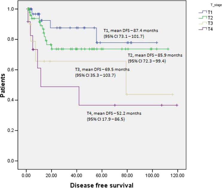 The aim of the present study was to provide insight into various demographic, clinical, and management profile of Indian patients with oral tongue squamous cell cancer (OTSCC). All the OTSCC patients who had undergone surgical treatment during 1995 to 2010 at a tertiary care center in North India were considered for the present study. The details of the patients were retrieved from a prospectively maintained computerized database. A total of 124 patients were included in the present study. Mean age of the patients was 50.4 ± 12.0 years. Lateral border of the tongue was the most common sub-site involved in 110 (88.7%) patients. Neck nodes were clinically palpable in 56.4% patients. Hemiglossectomy and anterior partial glossectomy were common surgical procedure undertaken in 57.2 and 25.8% patients. Negative resection margin was achieved in 97.5% patients. Pathological neck metastasis was seen in 40.3% patients. Occult neck metastasis was present in 25.9% patients among clinical N0 neck. At a mean follow-up of 29.8 months (SD 3.1), 20.1% developed disease relapse and 4.0% patients developed second primaries. Kaplan-Meier analysis estimated a 5-year disease-free survival of 81.5% and a 5 years overall survival of 78.6%. Cox proportional regression analysis predicted tumor size and number of positive nodes to be independent predictive variables for disease recurrence. Quality controlled surgery, coupled with adjuvant treatment when required, provides a safe and effective treatment of OTSCC with a good disease-free survival and loco-regional control.