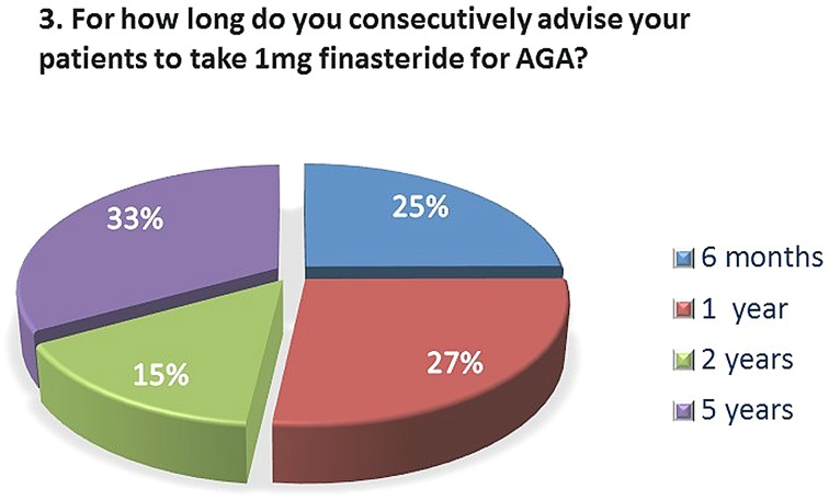 Methods: A tablet-based survey was conducted from February 2017 to January 2018 in Italy to investigating use of 1 mg/day finasteride in the treatment of AGA. Approximately 1153 Italian dermatologists were surveyed about prescription frequency, therapy duration, treatment practices, and side effects eventually reported.
