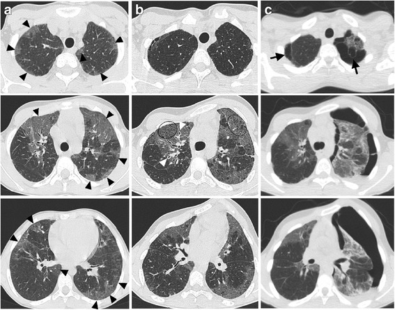 Results: Pulmonary symptoms including dyspnea, coughing, need for oxygen, and clubbing started 3.3 years before the diagnosis was made at the mean age of 8.83 years (range 2-15). All children had recurrent pulmonary infections, 3 had a spontaneous pneumothorax, and 4 developed scoliosis. The frequency of pulmonary complaints increased over time. The leading radiographic pattern was ground-glass opacities with a rapid increase in reticular pattern and traction bronchiectasis between initial and follow-up Computer tomography (CT) in all subjects. Honeycombing and cysts were newly detectable in 3 patients. Half of the patients received a lung biopsy for diagnosis; histological patterns were cellular non-specific interstitial pneumonia, usual interstitial pneumonia-like, and desquamative interstitial pneumonia.