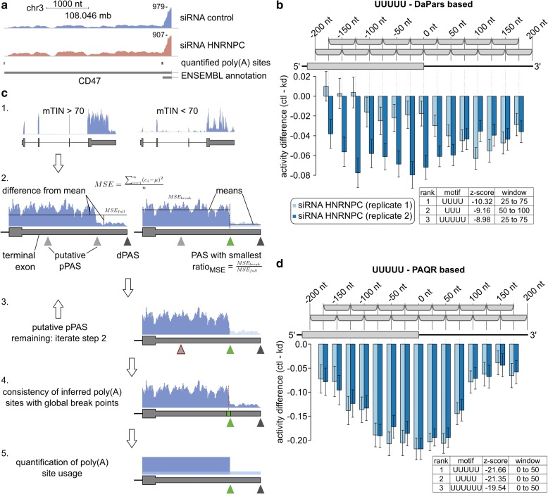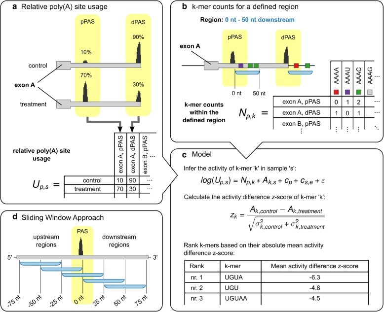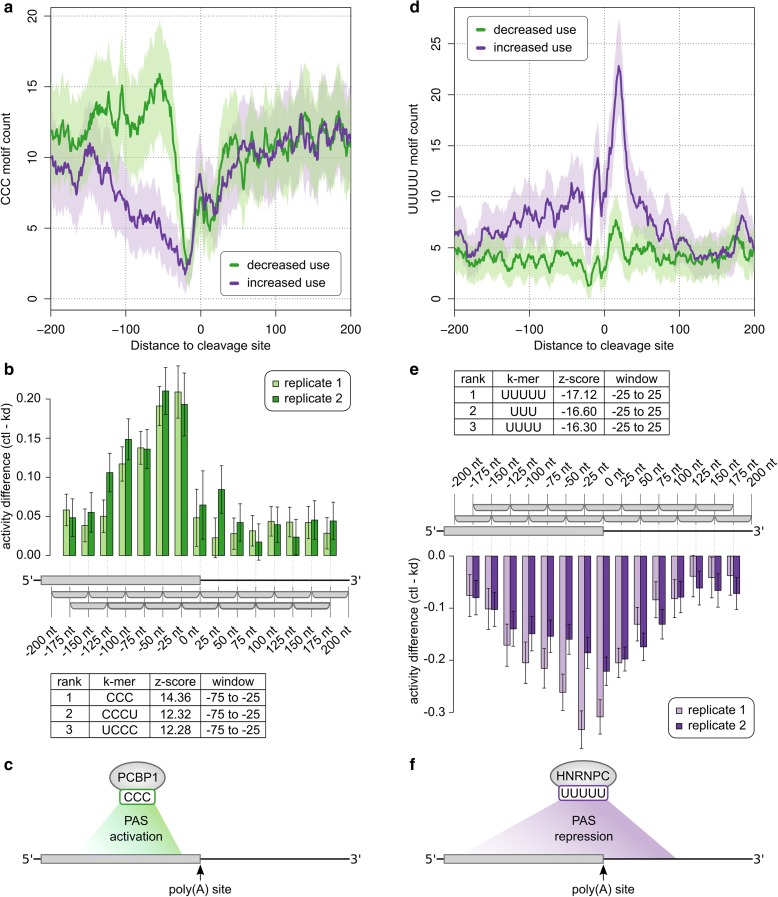 3' Untranslated regions (3' UTRs) length is regulated in relation to cellular state. To uncover key regulators of poly(A) site use in specific conditions, we have developed PAQR, a method for quantifying poly(A) site use from RNA sequencing data and KAPAC, an approach that infers activities of oligomeric sequence motifs on poly(A) site choice. Application of PAQR and KAPAC to RNA sequencing data from normal and tumor tissue samples uncovers motifs that can explain changes in cleavage and polyadenylation in specific cancers. In particular, our analysis points to polypyrimidine tract binding protein 1 as a regulator of poly(A) site choice in glioblastoma.