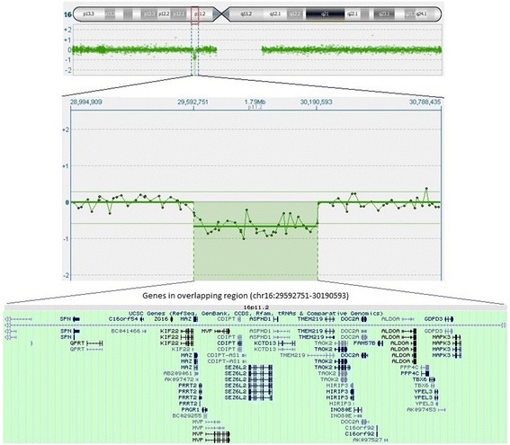 Case presentation: Our patient is a 2-year-old white girl from the first pregnancy of a non-consanguineous healthy young white couple (father 33-years old and mother 29-years old). Our patient and her parents' DNA were analyzed by comparative genomic hybridization-array platform. Comparative genomic hybridization-array analysis highlighted a ∼ 600 kb deletion in 16p11.2 region. It has a segregant nature, since it was found in the mother and in her 2-year-old daughter. The microdeletion was confirmed by fluorescence in situ hybridization analysis.
