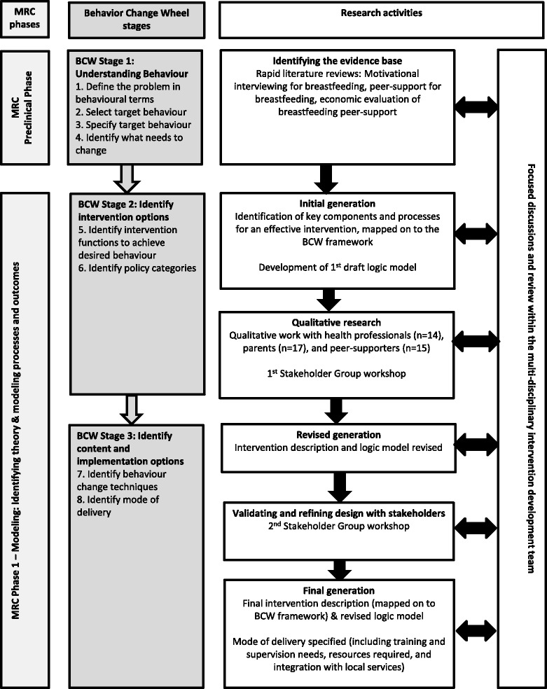 Conclusions: The MI-informed breastfeeding peer-support intervention developed using this systematic and user-informed approach has a clear theoretical basis and well-described behaviour change techniques. The process described could be useful in developing other complex interventions that incorporate peer-support and/or MI.
