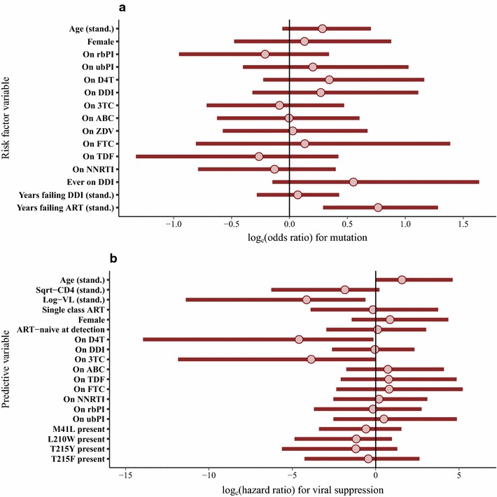 Results: A total of 180 patients with Q151M mutation and 85 with T69i mutation were identified, almost entirely from before 2006. Occurrence of both the Q151M and T69i mutations was strongly associated with cumulative period of virological failure while on ART, and for Q151M there was a particular positive association with use of stavudine and negative association with use of boosted-protease inhibitors. Subsequent viral suppression was negatively associated with viral load at sequencing for both mutations, and for Q151M we found a negative association with didanosine use but a positive association with boosted-protease inhibitor use. The results obtained in these analyses were also consistent with potentially large associations with other drugs. Analyses were inconclusive regarding associations between the mutations and mortality, but mortality was high for patients with low CD4 at detection.
