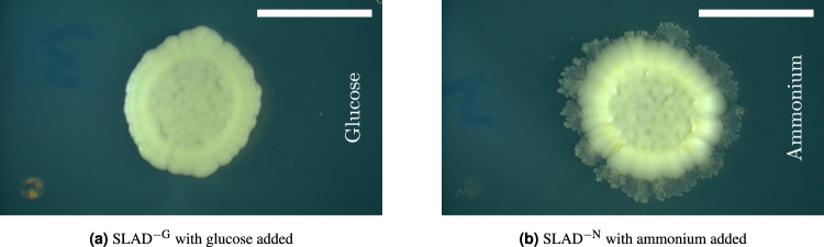 The emergence of diffusion-limited growth (DLG) within a microbial colony on a solid substrate is studied using a combination of mathematical modelling and experiments. Using an agent-based model of the interaction between microbial cells and a diffusing nutrient, it is shown that growth directed towards a nutrient source may be used as an indicator that DLG is influencing the colony morphology. A continuous reaction-diffusion model for microbial growth is employed to identify the parameter regime in which DLG is expected to arise. Comparisons between the model and experimental data are used to argue that the bacterium Bacillus subtilis can undergo DLG, while the yeast Saccharomyces cerevisiae cannot, and thus the non-uniform growth exhibited by this yeast must be caused by the pseudohyphal growth mode rather than limited nutrient availability. Experiments testing directly for DLG features in yeast colonies are used to confirm this hypothesis.