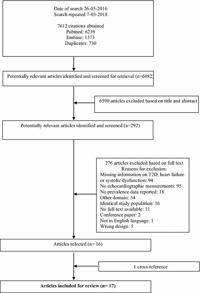 Methods: A systematic search of Medline and Embase was performed to extract the prevalence of LVSD/HFrEF in T2D (17 studies, mean age 50.1 ± 6.3 to 71.5 ± 7.5), which were pooled using random-effects meta-analysis.