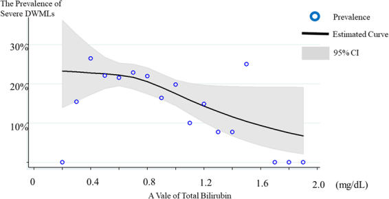 Recent studies have reported that deep white matter lesions (DWMLs) on magnetic resonance imaging scans are related to the risk of developing impaired cognitive function in future. Bilirubin exhibits a potent antioxidant effect and an inverse relationship has been reported between bilirubin levels and the risk of several atherosclerotic diseases; however, there is limited evidence with regard to the effect of bilirubin levels on cerebrovascular diseases including DWMLs. This cross-sectional study included 1121 apparently healthy Japanese adults. The subjects were divided into three groups according to their bilirubin levels (low, <0.5 mg/dl; intermediate, ≥0.5 mg/dl and <1.0 mg/dl; and high, ≥1.0 mg/dl). The severity of DWMLs was evaluated according to Fazekas scale and their relation to bilirubin levels was examined. The association between bilirubin levels and the presence of severe DWMLs was assessed using multivariate logistic regression analysis. The analysis revealed that the low- and intermediate bilirubin groups indicated 2.36- and 1.33-fold increase in the prevalence of severe DWMLs compared with the high-bilirubin group, respectively (95% confidence interval (CI): 1.12-4.97 (the low-bilirubin group), 95% CI: 0.85-2.07 (the intermediate-bilirubin group). In conclusion, low total bilirubin levels could be associated with a high prevalence of severe DWMLs in apparent healthy subjects.