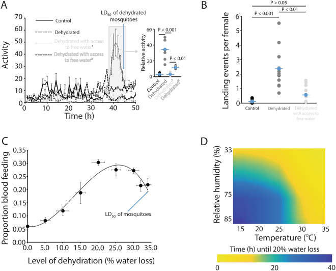 Dehydration prompts increased activity and blood feeding by mosquitoes