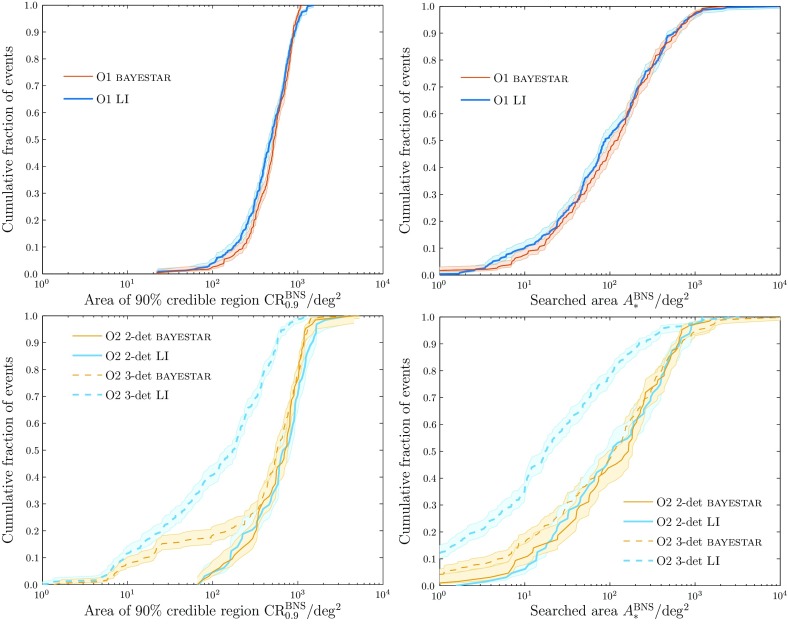 Regions of aLIGO ( top left ), AdV ( top right ) and…