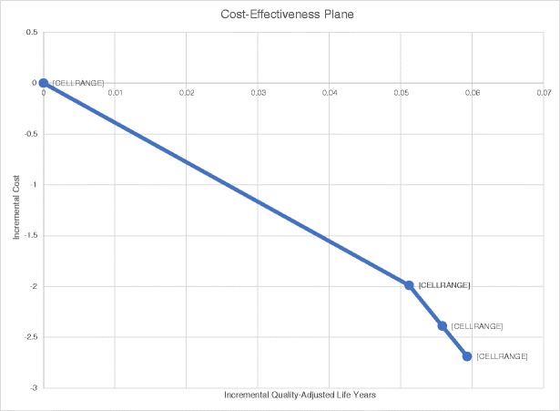 Main measures: Discounted costs, quality-adjusted life years (QALYs), and incremental cost-effectiveness ratios.