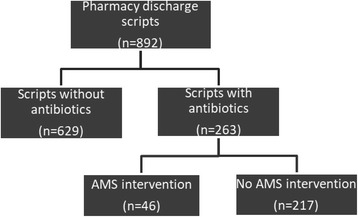 Methods: Patients with discharge medications processed by the pharmacy were identified using a computerized pharmacy medication tracker over a four week period. The antimicrobials prescribed on discharge were assessed independently for appropriateness of antimicrobial choice, dose, frequency and duration. Data on various AMS interventions was collected. Univariate followed by multivariate logistic regression (MVLR) analysis was performed using SPSS V 23 (IBM, California).