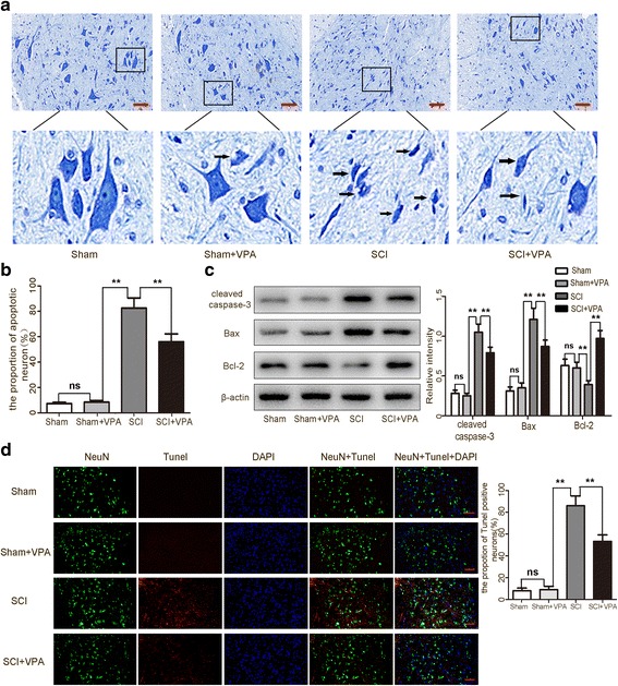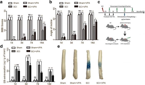 Methods: The Basso-Beattie-Bresnahan locomotion scale, the inclined plane test, the blood-spinal cord barrier, and Nissl staining were employed to determine the neuroprotective effects of VPA treatment after SCI. Assessment of microglia polarization and pro-inflammatory markers, such as tumor necrosis factor (TNF)-α, interleukin (IL)-1β, IL-6, and interferon (INF)-γ was used to evaluate the neuroinflammatory responses and the anti-inflammatory effects of VPA treatment. Immunofluorescent staining and Western blot analysis were used to detect HDAC3 nuclear translocation, activity, and NF-κB signaling pathway activation to evaluate the effects of VPA treatment. The impact of STAT1 acetylation on NF-kB pathway and the interaction between STAT1 and NF-kB were assessed to evaluate anti-inflammation effects of VPA treatment and also whether these effects were dependent on a STAT1/NF-κB pathway to gain further insight into the mechanisms underlying the development of the neuroinflammatory response after SCI.