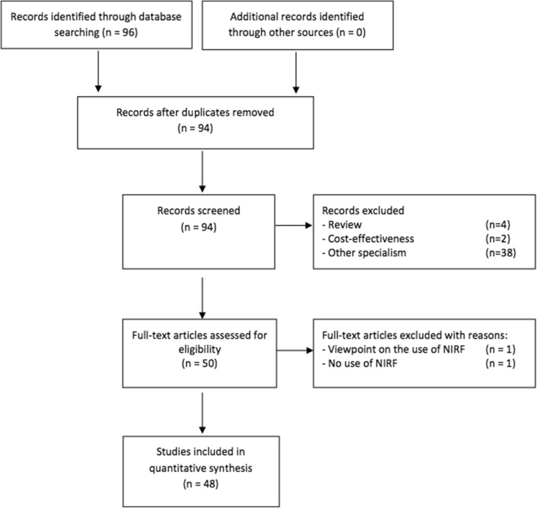 Results: Forty-eight selected studies included 1166 animal/human subjects in total. NIRF imaging was described for a variety of (pre)clinical applications in plastic surgery. Thirty-two articles used NIRF angiography, i.e., vascular imaging after intravenous dye administration. Ten articles reported on NIRF lymphography after subcutaneous dye administration. Although currently most applied, general protocols for dosage and timing of dye administration for NIRF angiography and lymphography are still lacking. Three articles applied NIRF to detect nerve injury, and another three studies described other novel applications in plastic surgery.