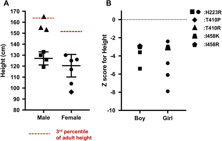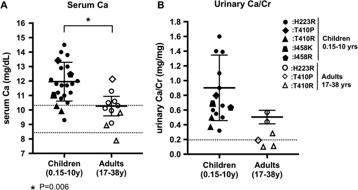 Patients and methods: The H223R mutation occurred in 18 patients. T410P, I458R and I458K each occurred in single cases; T410R was present in a father and his two sons. Laboratory records were analyzed individually and in aggregate.
