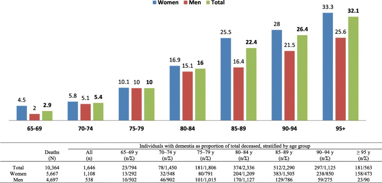 Methods: A population-based cross-sectional survey was conducted in Westphalia-Lippe (Germany), based on the analysis of death certificates from 2011. Individuals with dementia ≥ 65 years were identified using the documented cause of death. In this context, all mentioned causes of death were included. In addition, ten selected comorbidities were also analyzed. The results were presented descriptively. Using multivariate logistic regression, place of death was analyzed for any association with comorbidities.