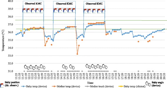 Continuous, real-time monitoring of neonatal position and temperature during Kangaroo Mother Care using a wearable sensor: a techno-feasibility pilot study