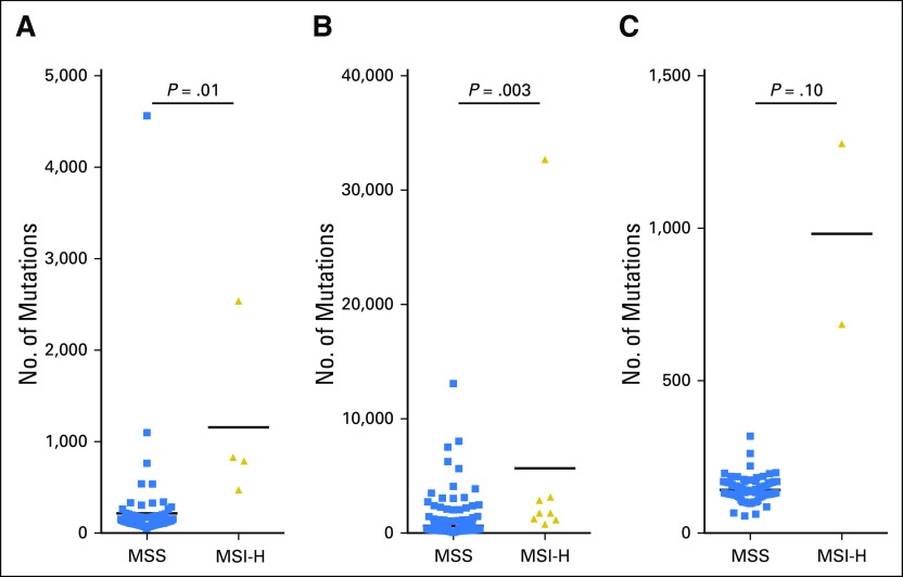 Methods: Using our recently published MSI-calling software, MANTIS, we analyzed whole-exome data from 11,139 tumor-normal pairs from The Cancer Genome Atlas and Therapeutically Applicable Research to Generate Effective Treatments projects and external data sources across 39 cancer types. Within a subset of these cancer types, we assessed mutation burden, mutational signatures, and somatic variants associated with MSI.