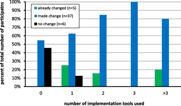 Conclusion: This study found that clinicians use tools to implement practice changes related to BCS guideline. Tools developed for clinicians were used to understand and consolidate the recommendations before tools to be used with patients were employed to promote decision-making. Mediating factors that impacted tool use confirmed previous research. Finally, use of some iTools decreased over time because information was internalized.