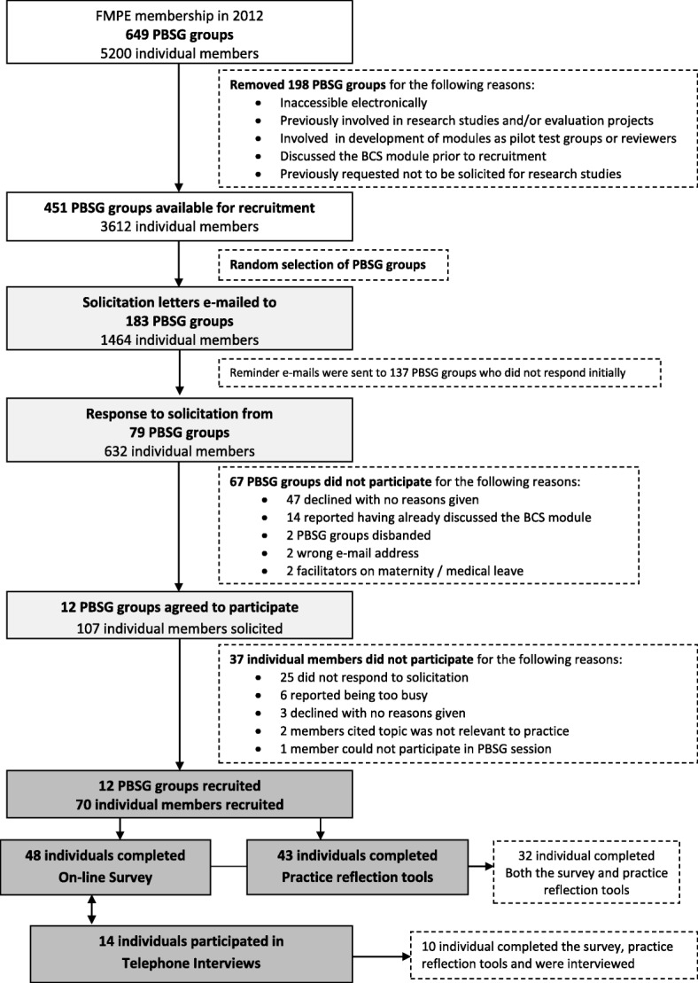 Methods: Canadian primary care providers who are members of the Practice-Based Small Group Learning Program (n = 1464) were invited to participate in this mixed methods study. An educational module was discussed in a small group learning context, and data collection included an on-line survey, practice reflection tools (PRTs), and interviews. The module included both the Canadian Task Force on Preventive Health Care revised guideline on BCS and iTools for clinician and/or patient use. After discussing the module and at 3 months, participants completed PRTs identifying their planned practice change(s) and documenting implementation outcome(s). Use of the iTools was explored via online survey and individual interviews.
