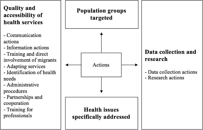 Results: The content analysis revealed that the policy aim for all three analysed countries is the improvement of the health status of the immigrant population based on equity and equality principles. The main strategies are the adaptation of services through actions targeting patients and providers, such as the implementation of cultural mediators and trainings for health professionals.