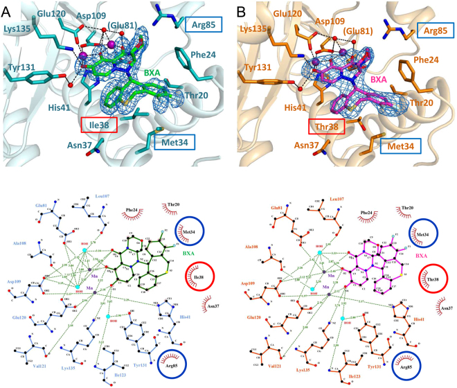 Baloxavir acid (BXA), derived from the prodrug baloxavir marboxil (BXM), potently and selectively inhibits the cap-dependent endonuclease within the polymerase PA subunit of influenza A and B viruses. In clinical trials, single doses of BXM profoundly decrease viral titers as well as alleviating influenza symptoms. Here, we characterize the impact on BXA susceptibility and replicative capacity of variant viruses detected in the post-treatment monitoring of the clinical studies. We find that the PA I38T substitution is a major pathway for reduced susceptibility to BXA, with 30- to 50-fold and 7-fold EC50 changes in A and B viruses, respectively. The viruses harboring the I38T substitution show severely impaired replicative fitness in cells, and correspondingly reduced endonuclease activity in vitro. Co-crystal structures of wild-type and I38T influenza A and B endonucleases bound to BXA show that the mutation reduces van der Waals contacts with the inhibitor. A reduced affinity to the I38T mutant is supported by the lower stability of the BXA-bound endonuclease. These mechanistic insights provide markers for future surveillance of treated populations.