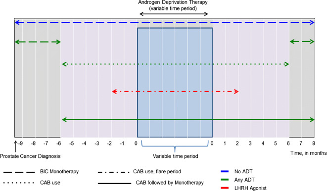 Methods: The SEER-Medicare database was used to identify prostate cancer patients aged ≥ 66 years diagnosed between 2007 and 2011 and who filled at least one prescription for BIC. Duration of BIC treatment was assessed in relation to ADT use; either alone (monotherapy), as part of CAB only, and as part of CAB followed by monotherapy. Additionally, we assessed use of BIC during or outside a potential testosterone flare prevention period (initiation within 2 months of an LHRH agonist).