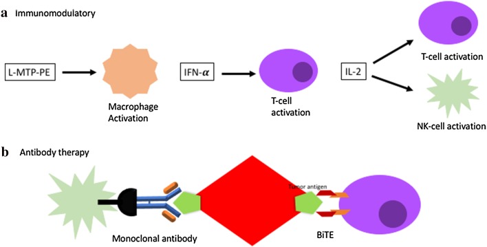 Cancer immunotherapies, widely heralded as transformational for many adult cancer patients, are becoming viable options for selected subsets of pediatric cancer patients. Many therapies are currently being investigated, from immunomodulatory agents to adoptive cell therapy, bispecific T-cell engagers, oncolytic virotherapy, and checkpoint inhibition. One of the most exciting immunotherapies recently FDA approved is the use of CD19 chimeric antigen receptor T cells for pre-B-cell acute lymphoblastic leukemia. With this approval and others, immunotherapy for pediatric cancers is gaining traction. One of the caveats to many of these immunotherapies is the challenge of predictive biomarkers; determining which patients will respond to a given therapy is not yet possible. Much research is being focused on which biomarkers will be predictive and prognostic for these patients. Despite many benefits of immunotherapy, including less long-term side effects, some treatments are fraught with immediate side effects that range from mild to severe, although most are manageable. With few downsides and the potential for disease cures, immunotherapy in the pediatric population has the potential to move to the front-line of therapeutic options.