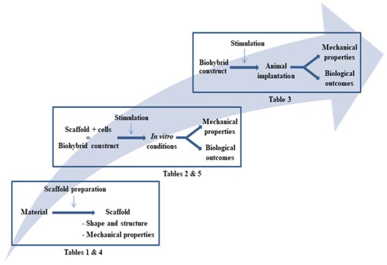 Tissue engineering is a promising approach to repair tendon and muscle when natural healing fails. Biohybrid constructs obtained after cells’ seeding and culture in dedicated scaffolds have indeed been considered as relevant tools for mimicking native tissue, leading to a better integration in vivo. They can also be employed to perform advanced in vitro studies to model the cell differentiation or regeneration processes. In this review, we report and analyze the different solutions proposed in literature, for the reconstruction of tendon, muscle, and the myotendinous junction. They classically rely on the three pillars of tissue engineering, i.e., cells, biomaterials and environment (both chemical and physical stimuli). We have chosen to present biomimetic or bioinspired strategies based on understanding of the native tissue structure/functions/properties of the tissue of interest. For each tissue, we sorted the relevant publications according to an increasing degree of complexity in the materials’ shape or manufacture. We present their biological and mechanical performances, observed in vitro and in vivo when available. Although there is no consensus for a gold standard technique to reconstruct these musculo-skeletal tissues, the reader can find different ways to progress in the field and to understand the recent history in the choice of materials, from collagen to polymer-based matrices.