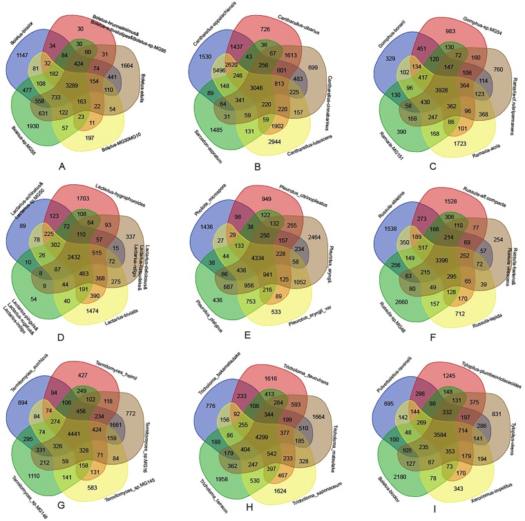 Macrofungus is defined as the fungus that grows an observable sporocarp. The sporocarps of many species are commonly called mushrooms and consumed by people all around the world as food and/or medicine. Most macrofungi belong to the divisions Basidiomycetes and Ascomycetes, which are estimated to contain more than 80,000 species in total. We report the draft genome assemblies of macrofungi (83 Basidiomycetes species and 7 Ascomycetes species) based on Illumina sequencing. The genome sizes of these species ranged from 27.4 Mb (Hygrophorus russula) to 202.2 MB (Chroogomphus rutilus). The numbers of protein-coding genes were predicted in the range of 9,511 (Hygrophorus russula) to 52,289 (Craterellus lutescens). This study provides the largest genomic dataset for macrofungi species. This resource will facilitate the artificial cultivation of edible mushrooms and the discovery of novel drug candidates.