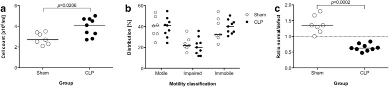 Methods: Polymicrobial sepsis in 12-week-old male C57BL/6 mice was induced by cecal ligation and puncture (CLP), followed by a mating of the male survivors (or appropriate sham control animals) 6 weeks later with healthy females. Alveolar macrophages of offspring animals were isolated and stimulated with either LPS or Zymosan, and supernatant levels of TNF-α were quantified by ELISA. Furthermore, systemic cytokine response to intraperitoneally injected LPS was assessed after 24 h. Also, morphology, motility, and global DNA methylation of the sepsis survivors' sperm was examined.