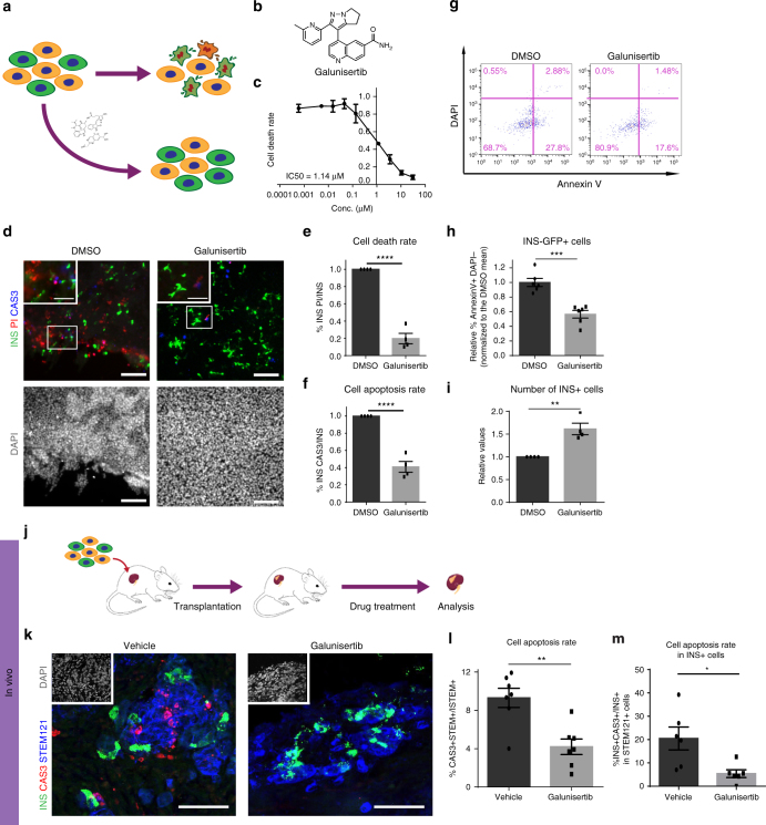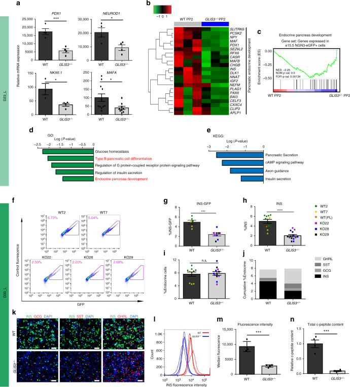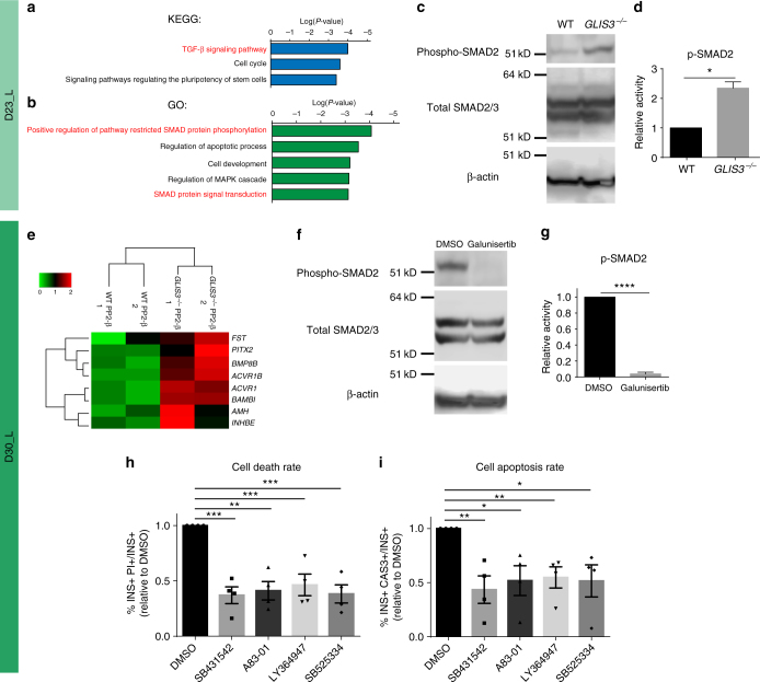 GLIS3 mutations are associated with type 1, type 2, and neonatal diabetes, reflecting a key function for this gene in pancreatic β-cell biology. Previous attempts to recapitulate disease-relevant phenotypes in GLIS3-/- β-like cells have been unsuccessful. Here, we develop a "minimal component" protocol to generate late-stage pancreatic progenitors (PP2) that differentiate to mono-hormonal glucose-responding β-like (PP2-β) cells. Using this differentiation platform, we discover that GLIS3-/- hESCs show impaired differentiation, with significant death of PP2 and PP2-β cells, without impacting the total endocrine pool. Furthermore, we perform a high-content chemical screen and identify a drug candidate that rescues mutant GLIS3-associated β-cell death both in vitro and in vivo. Finally, we discovered that loss of GLIS3 causes β-cell death, by activating the TGFβ pathway. This study establishes an optimized directed differentiation protocol for modeling human β-cell disease and identifies a drug candidate for treating a broad range of GLIS3-associated diabetic patients.