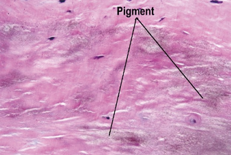 - Gaines JJ, Jr, Pai GM. Cardiovascular ochronosis. Arch Pathol Lab Med 1987;111:991-4. - PubMed