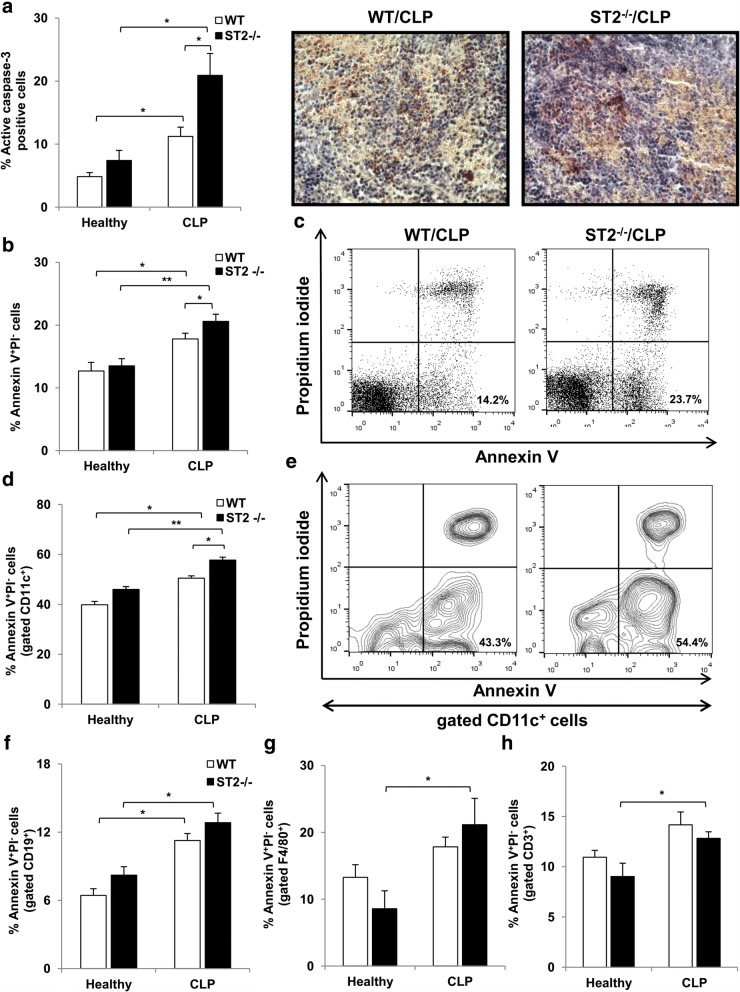 Methods: Polymicrobial sepsis was induced using cecal ligation and puncture (CLP) model in ST2 deficient (ST2-/-) and wild type BALB/c mice. Peritoneal and spleen cells were isolated for further phenotyping. Apoptosis was determined by immunohistochemistry and flow cytometry.
