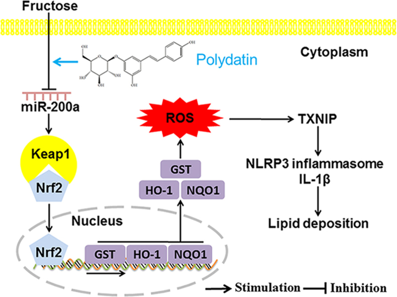 Keywords: Excess fructose intake; Keap1/Nrf2 pathway; Liver inflammation and lipid deposition; MiR-200a; Oxidative stress; Polydatin.