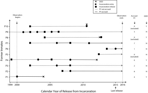 Methods: We linked NC inmate release data to NC death records, calculated OOD standardized mortality ratios to compare former inmates with NC residents, and calculated hazard ratios to identify predictors of time to OOD.