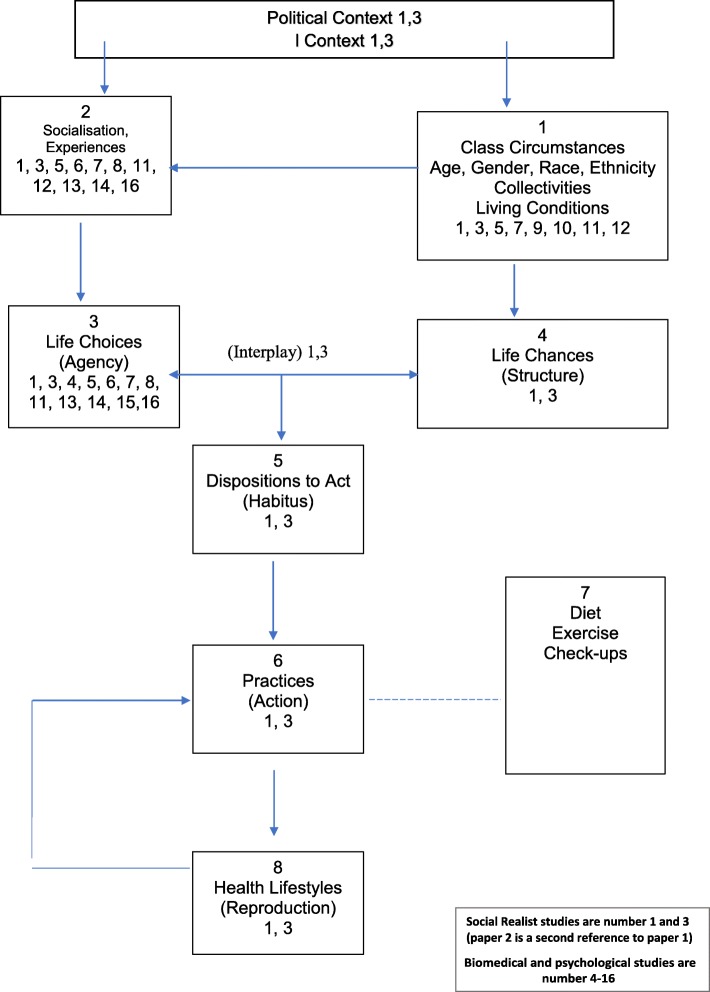 Methods: Using the RAMESES standards for meta-narrative systematic reviews, we identified studies from database searches and citation-tracking. Studies were grouped according to underlying theorisations of pre-diabetes. Following a descriptive analysis, the studies were synthesised with reference to Cockerham's health lifestyle theory.