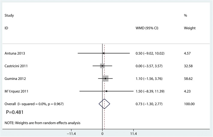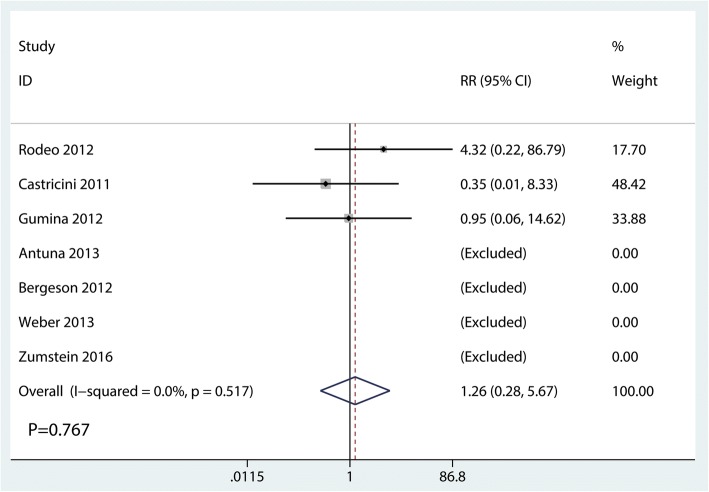 Methods: We searched the following databases: Pubmed, Embase, and Cochrane library databases from inception to April 2018. Studies that compared platelet-rich fibrin versus placebo for rotator cuff tears were included in this meta-analysis. Risk ratio (RR) with 95% confidence interval (CI) was pooled for discontinuous outcome, and weighted mean difference (WMD) with 95% CI was pooled for continuous outcome. Stata 12.0 was used for meta-analysis.