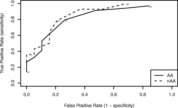 Results: For baseline and follow-up visits, internal consistency, as measured using Cronbach's alpha, was 0.80 and 0.81 in AA teens and 0.80 and 0.83 in nAA teens. Intraclass correlation coefficients were 0.59 and 0.76 in AA and nAA teens, respectively, with stable asthma control over time. Agreement between ACT and physician assessment was moderate in AA teens and fair in nAA teens. An ACT score of ≤19 showed reduced sensitivity for not well controlled asthma in both groups, while a score of ≤21 had the greatest area under the ROC curve. ACT scores were marginally responsive to change in control status.