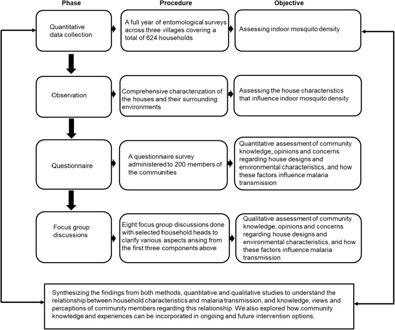 Results: The entomological surveys showed statistically higher indoor densities of the malaria vectors (Anopheles arabiensis and Anopheles funestus) in houses with mud walls compared to plastered or brick walls, open eaves compared to closed eaves and unscreened windows compared to screened windows. Most respondents reported that their houses allowed mosquito entry, at least partially. Participants were aware that house structure and environmental characteristics influenced indoor mosquito densities and consequently malaria transmission. They were concerned about living in poorly-constructed houses with gaps on eaves, walls, windows and doors but were constrained by low income.