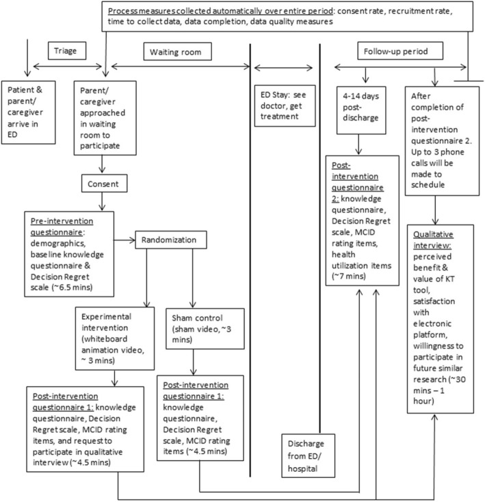 Keywords: Caregivers; Health consumers; Knowledge translation; Parents; Pediatric emergency care; Pilot trial.