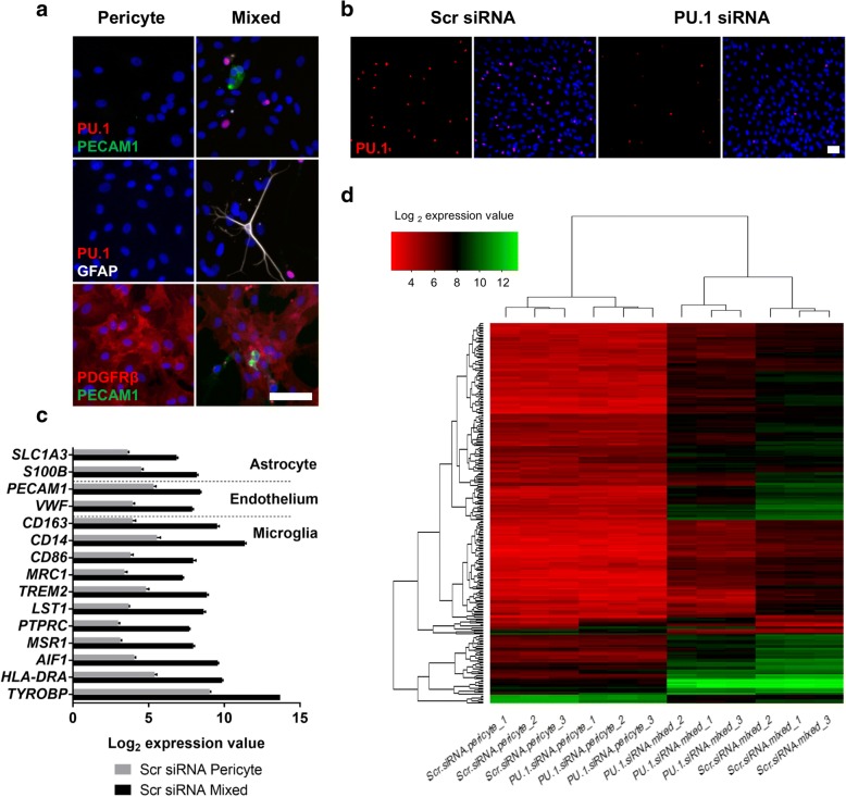 Methods: To investigate how PU.1 contributes to immune activation in human microglia, microarray analysis was performed on primary human mixed glial cultures subjected to siRNA-mediated knockdown of PU.1. Microarray hits were confirmed by qRT-PCR and immunocytochemistry in both mixed glial cultures and isolated microglia following PU.1 knockdown. To identify attenuators of PU.1 expression in microglia, high throughput drug screening was undertaken using a compound library containing FDA-approved drugs. NanoString and immunohistochemistry was utilised to investigate the expression of PU.1 itself and PU.1-regulated mediators in primary human brain tissue derived from neurologically normal and clinically and pathologically confirmed cases of AD.