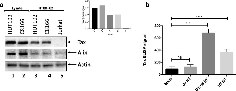 Background: HTLV-1 infects over 20 million people worldwide and causes a progressive neuroinflammatory disorder in a subset of infected individuals called HTLV-1 associated myelopathy/tropical spastic paraparesis (HAM/TSP). The detection of HTLV-1 specific T cells in the cerebrospinal fluid (CSF) suggests this disease is immunopathologically mediated and that it may be driven by viral antigens. Exosomes are microvesicles originating from the endosomal compartment that are shed into the extracellular space by various cell types. It is now understood that several viruses take advantage of this mode of intercellular communication for packaging of viral components as well. We sought to understand if this is the case in HTLV-1 infection, and specifically if HTLV-1 proteins can be found in the CSF of HAM/TSP patients where we know free virus is absent, and furthermore, if exosomes containing HTLV-1 Tax have functional consequences.